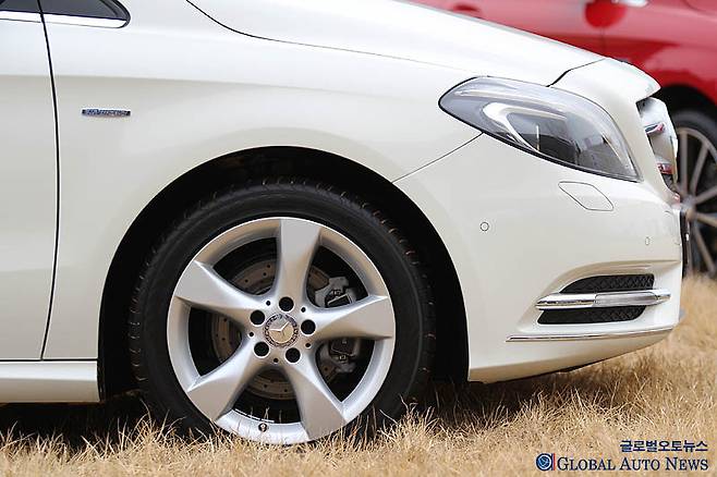 무엇보다 주목을 끄는 것은 0.26이라는 뛰어난 공기저항계수. 스테이션 왜건 타입의 모델이 이 정도의 공기저항계수를 실현한다는 것은 쉽지 않다. 오늘날 개발되는 대부분의 신기술은 안전과 연비 저감이 목적이다. B클래스의 공기저항계수는 연비저감을 최우선에 두고 있지만 더불어 앞쪽에서의 바람의 흐름을 원할히 제어하기 위한 설계가 이루어져 있다. 프론트 펜더와 휠 부근의 바람의 흐름과 차체 아래쪽으로 들어 가는 바람을 여하히 제어하느냐에 따라 차체의 거동을 안전하게 하고 저항을 줄여 연비 성능을 높일 수 있다. 이를 위해 휠 커버의 디자인까지 신경을 쓰고 있다.