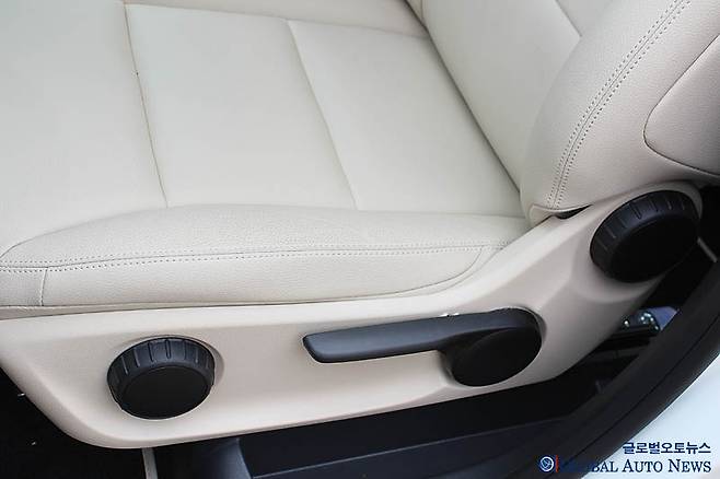 시트는 5인승. 수동으로 조작할 수 있다. 선대 모델은 6웨이 전동조절식이었다. 필자의 개인적인 의견인 수동을 더 좋아한다. 비용 문제도 그렇고 정지 상태에서 조정을 하는 것을 굳이 전동으로 할 필요가 없다는 생각 때문이다. 시트의 착좌감은 소프트한 편. 버키트 타입으로 지지성이 좋다. 전고가 낮아졌음에도 시트 포지션이 86mm 낮아져 머리공간은 선대보다 더 여유가 있다. 1열 시트의 헤드룸은 1,047mm로 선대보다 확대됐다. 그만큼 롤 센터가 낮다는 얘기이다. 휠 베이스가 짧아졌지만 실내 공간이 축소되지는 않았다. 레그룸은 976mm로 E, S 클래스보다 넓다. 2열 시트를 앞뒤로 140mm를 슬라이딩 할 수 있는 것도 세일즈 포인트다.