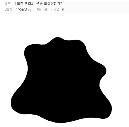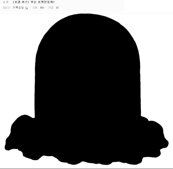 '거북손님'이라는 닉네임의 유저는 잘 알려진 포켓몬의 실루엣 사진을 올렸다. '피카츄'로 추정되는 포켓몬 실루엣 사진에 포갤 유저들은 '살찐 블래키', 피카츄로 변신한 메타몽' 등 창의성 있는 답을 댓글로 달았다.