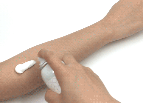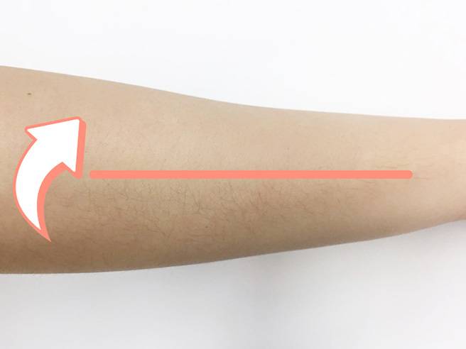 (더욱 확실한 비교 검증을 위해 털이 많은 팔에 시연했다)제모를 원하는 부위에 곧장 뿌린다.