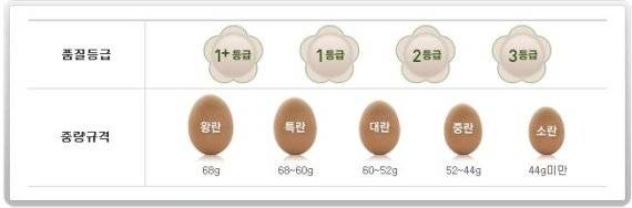 | 달걀 품질등급 및 중량규격 /출처=축산물품질평가원 |