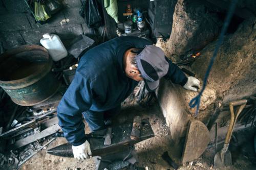 <<사진 = 대장간에서 이루어지는 철기 제작 공정의 대부분이 고된 육체노동이다. 쇠메질 대여섯 번에 장인의 숨소리가 거칠어진다. 그는 한참을 모루에 기대어 있었다.>>