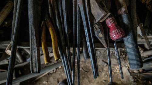 <<사진 = 도구를 다듬는 연장이 가지런히 놓여 있다. 제각기 용도는 달라도 같은 손때가 묻었다.>>