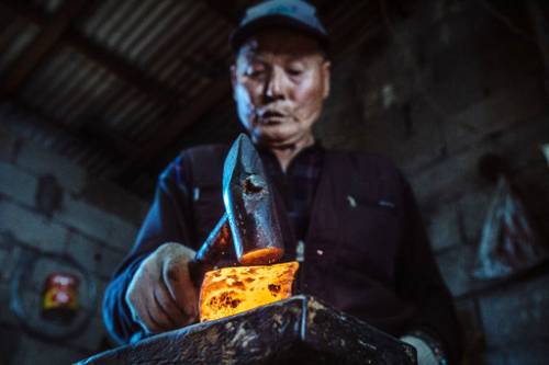 <<사진 = 설 장인이 도끼날을 벼리고 있다. 불똥이 얼굴로 튀었다. 그는 줄곧 도끼를 응시했다.>>