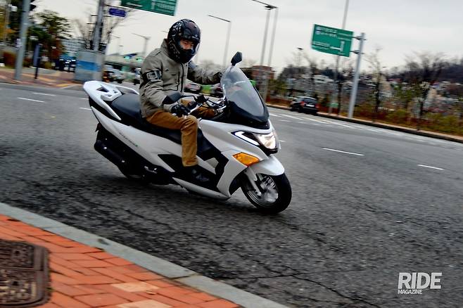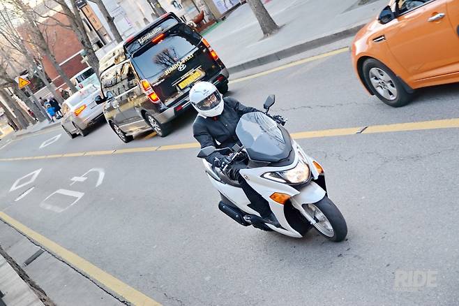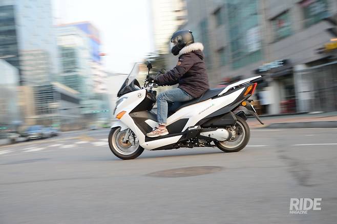 125cc 급인데도 차체가 큰 바람에 트렁크 공간이 넉넉한 것도 동급대비 맘에 들었다. 아무래도 트렁크는 넓을수록 좋은 것이 사실 아닌가. 그리고 라이딩 포지션이 몸에 잘 맞는가도 중요했다. 편집부 기자들은 모두 170cm대의 키에 보통 한국 남성 체구다. 넓지도 좁지도 않은 포지션은 핸들 거리나 발 놓는 자리가 어색함 없이 들어맞았다.