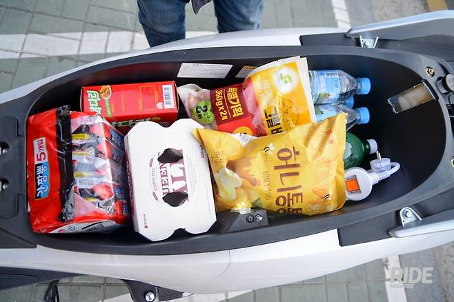 모터사이클을 이용해 장을 보러 간다 라는 말을 들으면 장 본 물건을 어떻게 들고 올까? 라고 생각하는 사람들이 있을 것이다. 자동차에 비해 수납공간이 적은 모터사이클은 따로 수납 가방을 하지 않는 이상 짐을 나르는 데 무리가 있다. 스티져는 중형급 스쿠터다. 여타 다른 바이크와 비교해 상대적으로 넓은 수납공간을 확보해 충분히 짐을 실어 나를 수 있을 거라 확신했다.