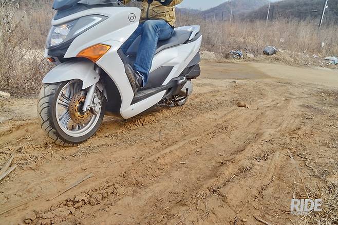 스티져는 왼쪽 브레이크 레버를 당기면 앞/뒤 브레이크가 연동돼 고르지 못한 노면에서도 준수한 제동성능을 발휘했다. 특히 125cc 스쿠터에 비해 상대적으로 큰 차체는 울퉁불퉁한 노면에서 가볍고 작은 사이즈의 스쿠터보다 차체의 흔들림이 줄어들어 주행 안정감이 높았다. 이런 험한 길에서도 꽤 잘 달려주는구나! 라고 느꼈다.