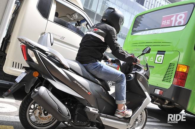 대림측은 신형 모델의 냉각시스템 개선을 크게 어필했다. 그래서 기자는 푹푹 찌는 서울 도심에서의 오랜 시간 라이딩에도 과연 이전에 나왔던 출력이 미세하게 떨어지는 부분 등이 개선됐을지 궁금했다. 온종일 폭염 속 차량 사이에 정차한 스티져는 엔진이나 냉각계통의 스트레스를 한계치까지 밀어붙여 시험하기 좋은 조건이었다.