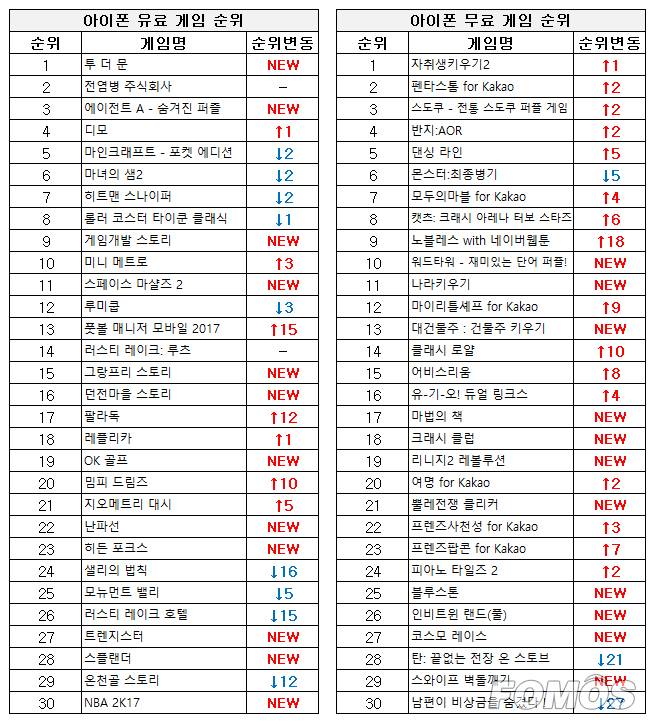 [차트-모바일]웰메이드 어드벤처 '투 더 문' 아이폰 인기 순위 1위