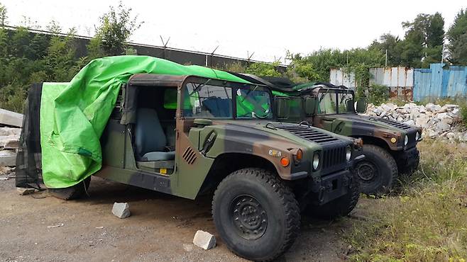험비는 토우 미사일·기관총을 장착하거나 병력을 수송하는 미군의 주력 전술차량으로 전략물자에 해당해 미국외 반출이 금지돼 있습니다.
