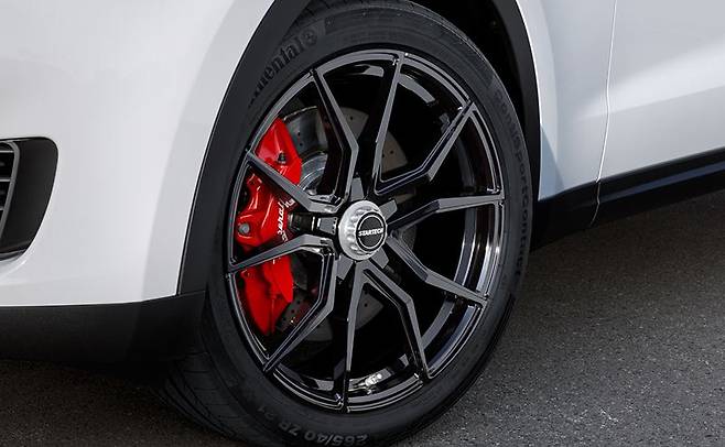 휠하우스를 가득 채우는 21인치 휠은 스타텍 전용이며 레이스카에서 흔히 사용되는 센터락 방식으로 체결한다.