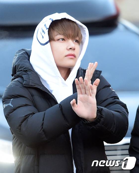 (고양=뉴스1스타) 권현진 기자 = 방탄소년단 뷔가 16일 오전 경기도 고양실내체육관에서 열린 MBC 설특집 ‘2017 아이돌스타 육상 양궁 리듬체조 에어로빅 선수권대회’(이하 ‘아육대’)에 참석하며 인사를 하고 있다.