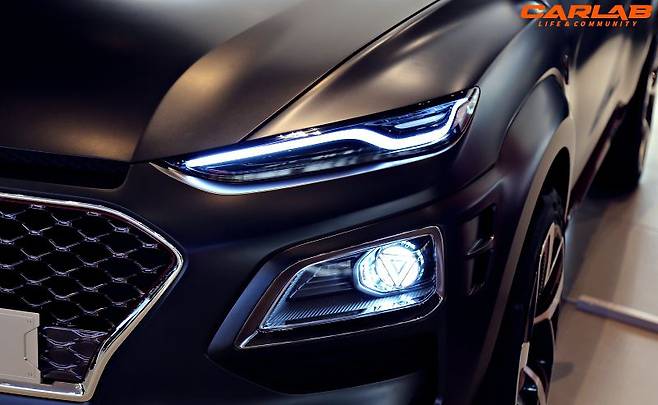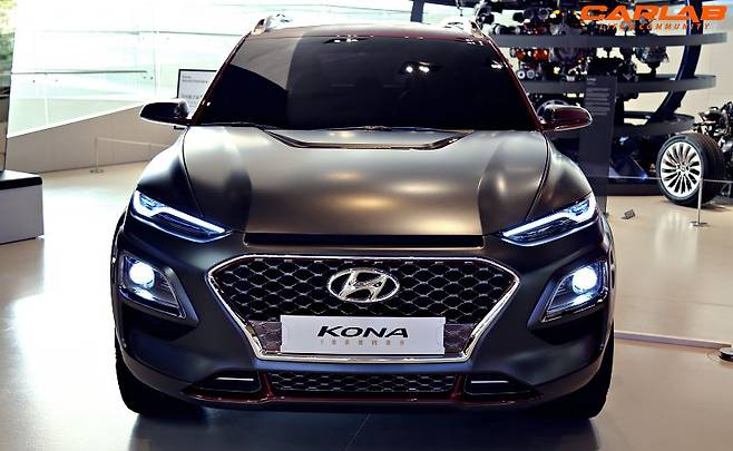 아이언맨이 돌아왔다. 다시 말하면 자동차 속에 녹아들었다. 공식적인 공개 전부터 눈매가 ‘아이언 맨(Iron Man)’을 닮은 것이 아니냐 라는 풍문이 돌았던 ‘코나’다.