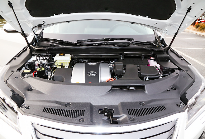 그런데 신형 RX450h는 배기량에 비해 엔진의 성능은 억제됐다. 이 차에 탑재된 3.5 가솔린 엔진은 262마력, 34.2kg.m을 내는데, 이는 가솔린 모델인 RX350(301마력, 37.7kg.m)에 비해 10%가량 낮은 수치다. 보다 넉넉하고 여유있게 달리라는데 도움이 되는 듯하다.
