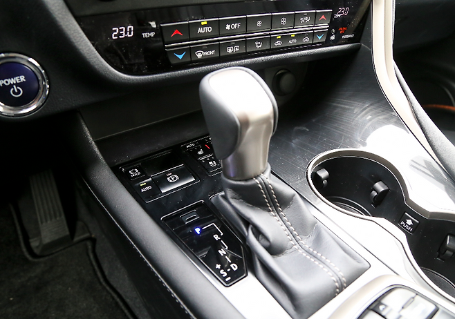RX 최초로 전자식 파킹 브레이크와 오토 홀드가 적용됐고, 그 옆에는 열선 및 쿨링 등 시트 조작 버튼(오토 지원)도 한 곳에 깔끔하게 모아놨다. 편리한 기능들을 새롭게 추가한 것은 칭찬할만한데, 버튼의 배치는 아쉽다. 이들은 기어노브 앞에 위치했는데, 조작할 때마다 손이 기어노브에 걸렸다.