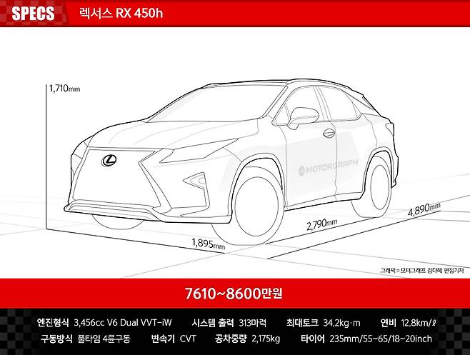 렉서스코리아는 신형 RX450h에 큰 기대를 걸고 있다. 커지고, 세련되고, 성능도 좋아졌지만 오히려 가격을 300만원이나 낮추며 적극적인 시장 공략에 나섰다(슈프림 트림 기준). 반면 가솔린 모델인 RX350의 가격은 850만원이나 올랐다. 하이브리드를 주력으로 삼겠다는 단호한 결의가 느껴진다.