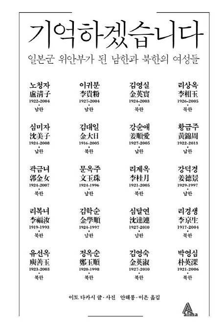 일본인 포토 저널리스트 이토 다카시의 남ㆍ북한 위안부 할머니에 대한 취재 기록이다. 이토는 1981년 히로시마ㆍ나가사키 원폭 피해자를 취재했다. 이 때 조선인 7만명도 피폭당한 사실을 알게 됐다. 전쟁을 일으킨 건 일본이었지만, 피해는 엉뚱한 곳으로 튀었다. 이후 식민지 피해자들을 찾아 다녔다. 1991년 김학순 할머니의 증언 이후 위안부 할머니들도 만났다. 남한 26명, 북한 14명 등 모두 90여명의 여성을 취재했다. 이토 본인이 “일본인이자 남성이라는 것을 끊임없이 자문”해야 하는, 정신적으로 가장 힘든 취재였다. 하지만 이 목소리를 기록해두는 게 일본인 저널리스트의 역할이라 믿었다. 그 가운데 남북한 14명 할머니에 대한 기록을 모아 낸 책이다. 당연하게도 이토는 2016년 발족한 ‘화해치유재단’에 대해 “국가로서의 사죄가 없다”고 비판해뒀다. 할머니들의 증언 동영상을 일본어판, 영어판, 한국어판으로 제작한 동영상을 웹사이트(http://artic.or.jp(http://artic.or.jp/))에 공개하는 프로젝트도 곧 시작한다.