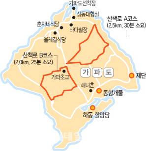 △가는법= 가파도 가는 배는 서귀포 모슬포항에서 하루 네 차례 운항한다. 왕복 요금은 1만 1400원이다. 입도료 1000원은 별도다. 아울러 신분증은 승선객 모두 반드시 지참해야한다. 승선에 앞서 모슬포여객터미널(794-5490~3)에 좌석을 예약해야한다.