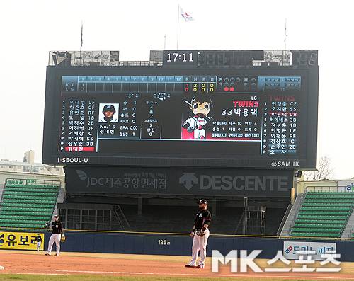 잠실 야구장 전광판이 새롭게 바뀌었다.
