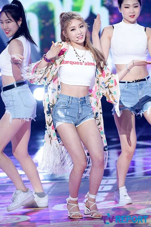 이름부터 시원한 청하는 무대 위에서도 데님 핫팬츠를 활용해 청량미를 장착했다.