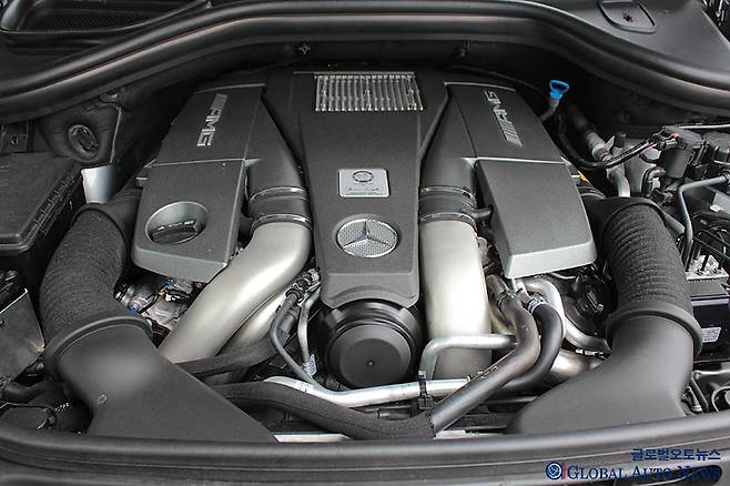 엔진은 SLK55AMG에 탑재된 5,461cc V8 DOHC에 트윈 터보를 결합한 것이다. 최고출력 525hp/5,250-5,750rpm, 최대토크 71.4kgm/1,750~5,000rpm를 발휘한다. 이는 구형보다 15마력, 7.1kg.m 상승한 것이다. SUV 사상 최강이라고 하는 성능이다. 출력과 토크 등에서 절대 수치를 중시하는 메르세데스 다운 설정이다. 이 엔진은 피에조 인젝터가 포함된 스프레이 가이드식 직분사 시스템과 ECO 스타트-스톱, 알루미늄 크랭크케이스 같은 최신의 기술이 망라돼 있다. 터보의 최대 부스트도 1바에서 1.3바로 높아졌다.
