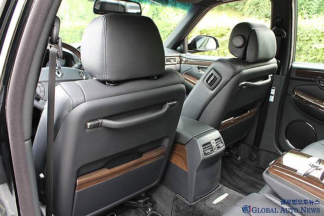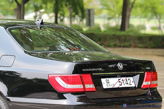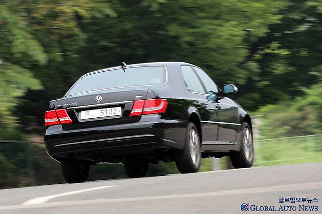 측면에서는 여전히 완고한 프레스티지 세단의 전형적인 프로포션이다. 젊은 시각으로는 조금은 둔해 보일 수 있는 터치이지만 이 시장의 유저들에게는 품위로 느껴진다. 차체 전장에 비해 프론트와 리어 오버행이 과거 대형차에 비해 상대적으로 짧다. 리어에서도 LED 컴비내이션 램프와 범퍼 아래쪽 디자인이 달라졌다. 듀얼 이그조스트 파이프 대신 하나만 설계되어 있다.