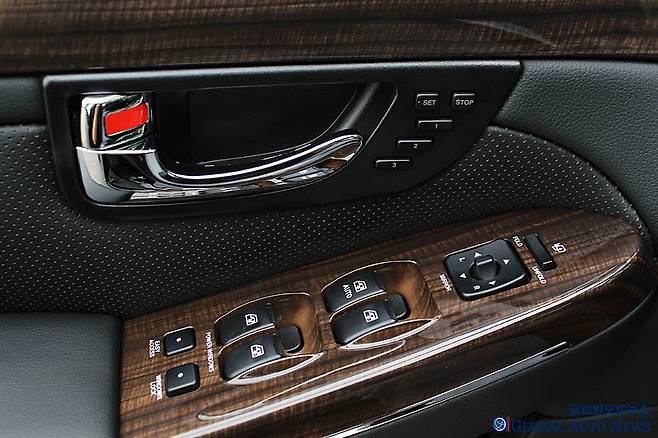 도어 트림 부분의 변화도 크다. 메르세데스제를 그대로 옮겨왔던 시트 조절 버튼은 시트 쿠션 옆쪽으로 옮겨갔다. 그 자리에는 메모리 시스템용 버튼만 남았다. 더 많이 사용하는 방식으로 변화이지만 비용저감 효과도 있다. 콘솔 암 레스트 부분에 우드 트림 처리를 해 고급성을 살리고 있다. 하이패스 시스템은 있다.