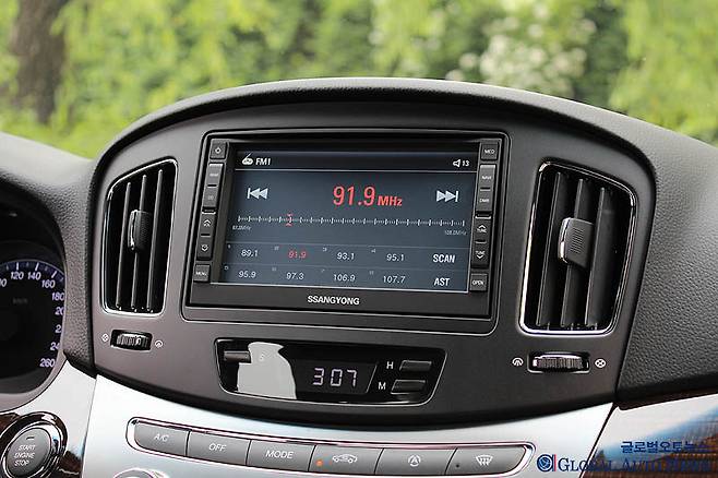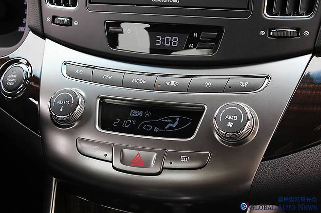 센터페시아와 도어 트림의 디자인 등에 걸쳐 폭넓게 손을 보았다. 센터 페시아 맨 위쪽 AV 모니터 좌우에 버튼을 배열해 사용편의성을 높였다. 그 아래 에어컨 컨트롤 패널의 디자인도 간결하게 처리해 시인성을 배려했다. 700만원 가량에 달하는 하만 카돈 오디오 시스템은 생략되었다. 대신 30만원 마이너스 옵션을 설정하고 있다.