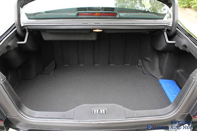 트렁크 공간은 앞뒤 길이는 짧지만 좌우 폭이 상대적으로 넓은 구성이다. 용량은 628리터로 607리터의 메르세데스 S클래스보다 크지만 시각적으로는 작아 보인다. 깊이 때문이다. 이는 실내 장을 크게 하기 위한 때문으로 보인다. 그래도 골프백 4개가 들어간다.