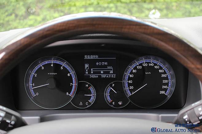 열선을 내장한 전동 틸팅&텔레스코픽 기능의 4스포크 스티어링 휠은 그대로다. 패드에는 각종 리모콘 버튼은 살렸지만 7단 자동변속기의 수동 작동을 위한 D-, D+ 버튼은 없다. LED 계기판은 블랙과 화이트만의 조합으로 고급성을 표현하고 있다. 클러스터의 바늘은 디지털 방식. 가운데 트림 컴퓨터의 디스플레이창에는 ACC를 비롯해 각종 주행정보가 표시된다.
