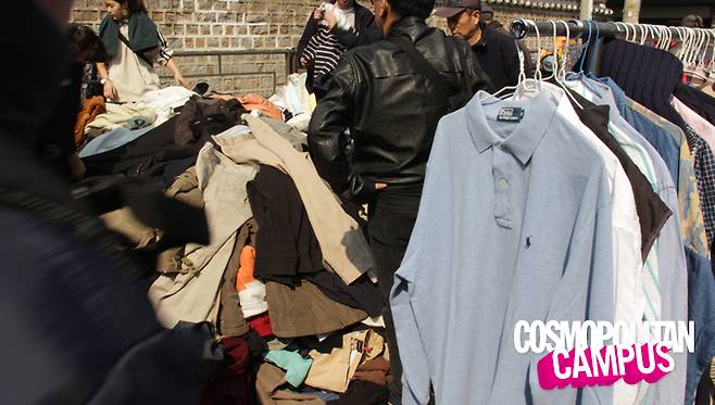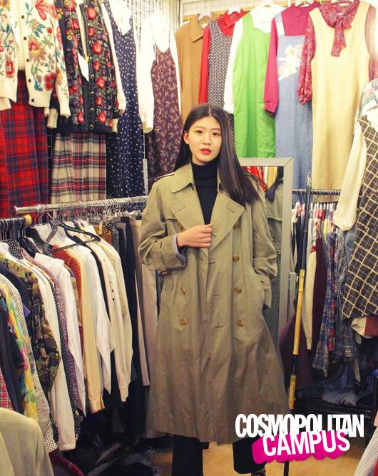 에디터가 한 달에 한번은 꼭 들러 득템하고 가는 곳이기도 하다. 일단 가장 큰 장점은 가격. 개인 구제샵보다 가격이 훨씬 저렴하다. 만약 호객행위가 부담스러워 꺼려진다면 걱정할 필요 제로! 호객행위가 아예 존재하지 않는 것은 아니지만 가는 사람 붙잡고 부담스러울 정도의 호객행위는 이뤄지지 않는다. 아참, 물건을 사기 전 살짝 애교 섞인 가격 흥정을 한다면 쿨하게 오케이 하는 사장님의 모습을 볼 수 있으니 참고하라! 지금 입고 있는 트렌치 코트 역시 아주 착한 가격대에 득템했다.