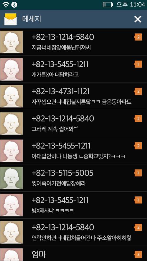 “야, 카톡 바로 안 보냐? 죽고 싶어서 환장을 했지? 두고 봐.”