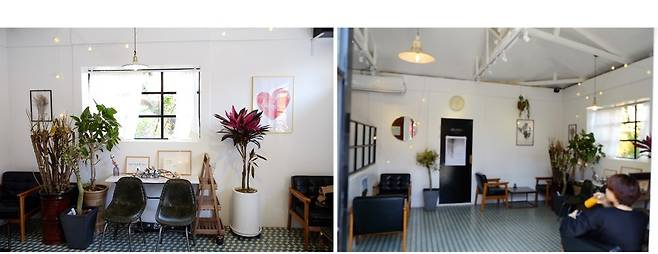 또 다른 건물도 있답니다. 봄날의 본관 카페 말고도 다른 콘셉트의 작은 공간도 두 군데 있어요. 깔끔하고 세련된 차 마시는 공간과 로스팅 중심의 연구를 하는 공간도 자리하고 있었어요.