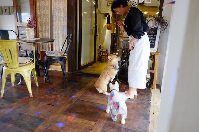 주인장의 세심한 배려가 손님들을 행복하게 만들어주는 바로 그런 가게였지요. 강아지주인장 오광이의 듬직하고 우직한 성격도 이 가게의 분위기를 만드는데 역할을 톡톡히 하고 있어요. 물론 가게 바깥에 마당도 넓게 자리잡고 있고, 화단도 있어 배변을 밖에서 볼 수 있지만 뒷처리를 확실히 해야 하는 게 이 가게 규칙이라고 해요. 실내 또한 배변훈련이 제대로 되지 않은 강아지는 매너벨트를 착용해야죠.