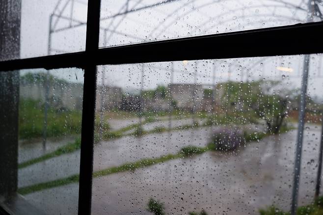 점례와 제가 그렇게 여유로운 시간을 보내던 사이, 저희가 기다리던 비가 때마침 쏟아졌어요.