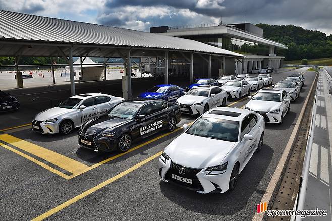 렉서스가 준비한 GS의 시승장소는 용인 스피드웨이다. 16개의 코너로 이루어진 4.3km 길이의 코스로 고저차가 높은 구간과 급회전 그리고 직선구간이 다채롭게 곁들어진 서킷이다. 이곳에서 렉서스 GS의 모든 차종을 3랩씩 몰아볼 수 있었다.