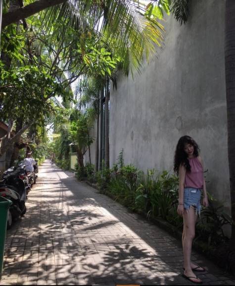 사진 속에는 핑크색 티셔츠에 짧은 반바지를 매치하고 동남아 여행을 즐기는 설리의 모습이 담겨있다. 모델 뺨치는 설리의 비율과 깡마른 몸매가 인상적이다.