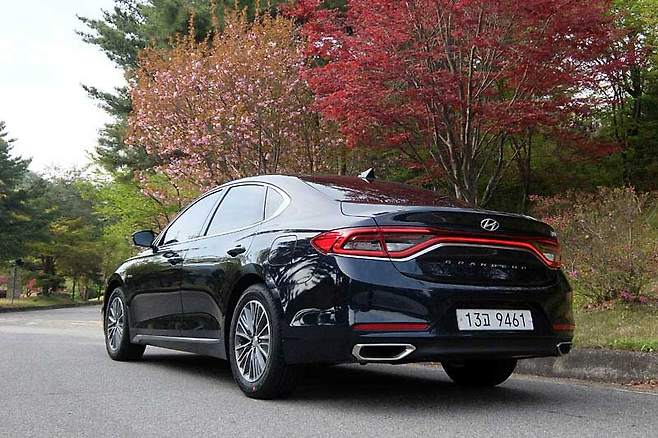 젊어진 모습이 다 좋은 건 아니지만 기존 그랜저HG 보다 확실히 날렵해 지고 캐스캐이딩 그릴로 오똑해진 코와 부드럽고 세련된 테일램프가 아주 눈에 쏙 들어온다.