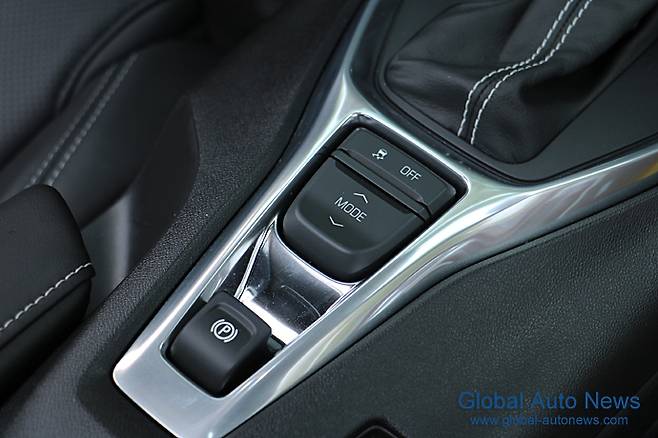 변속기는 6단 MT가 기본으로 옵션으로 8단 AT와 10단 AT도 선택할 수 있다. 시승차는 8단 AT. 6단 수동변속기는 회전수 보상 기능도 내장돼 있다.