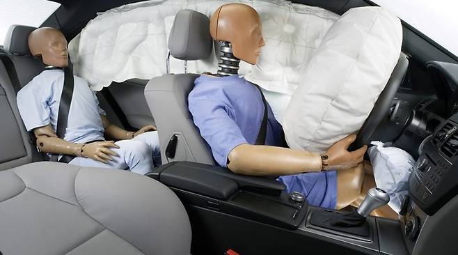 안전벨트만큼 중요한 안전장비가 에어백이다. 사고가 일어나는 순간 전개되면서 탑승자가 차내 구조물에 부딪쳐 입는 상해를 최소화하는 게 에어백의 역할이다. 불과 20년 전만 해도 운전석 에어백조차 옵션인 경우가 많았지만 최근에는 운전석과 동승석 에어백 탑재가 의무화됐고, 차종에 따라 8~10개의 에어백이 탑재된다.