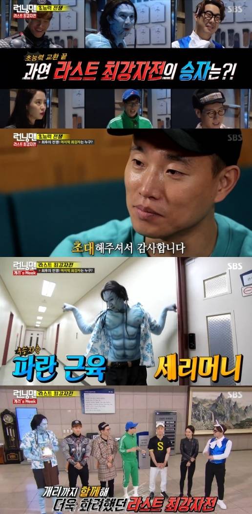 [엑스포츠뉴스 나금주 기자] 꽝손 이광수가 라스트 최강자에 등극했다. 또한 개리의 깜짝 등장으로 '런닝맨' 초능력 전쟁이 더욱 빛났다.