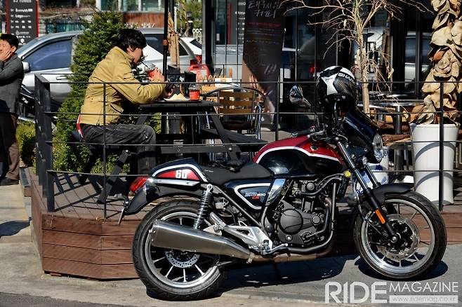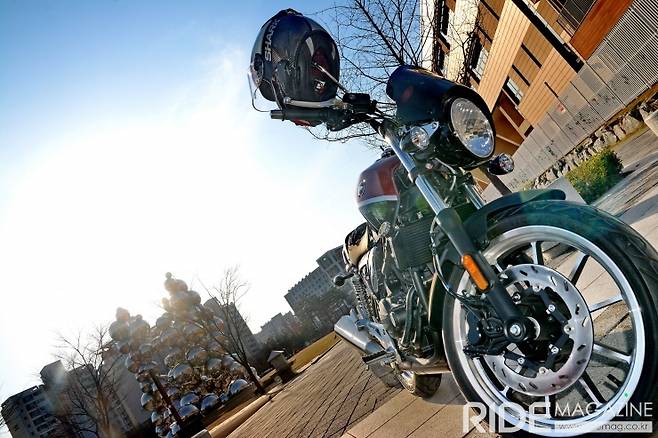 계기반을 덮는 작은 비키니 카울과 둥근 헤드라이트, 그리고 둥그스름한 개미 엉덩이 모양의 리어 캐노피 덕분에 시선을 받는 건 여전합니다. 조금 전에 먼지를 떨어내고 광을 낸 보람이 있군요. 어디까지나 클래식 스타일을 낸 현대식 바이크이기 때문에 외모는 아주 중요합니다. 클래식 바이크의 가장 큰 부분이 바로 분위기인걸요. 때가 되면 여기에 어울리는 클래시컬한 라이딩 기어 세트를 구비해 볼 생각입니다.
