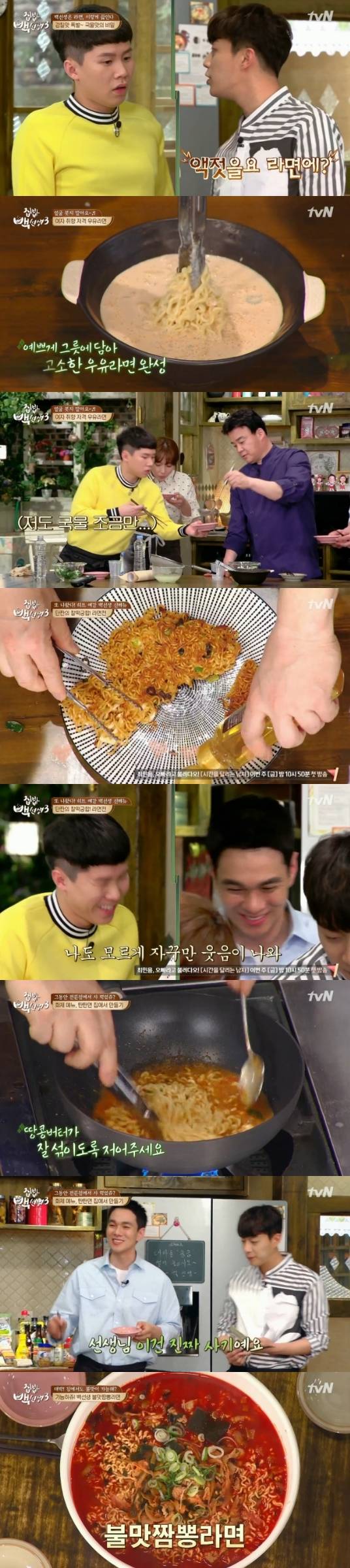 3월 28일 방송된 tvN ‘집밥 백선생3’은 라면 편으로 진행돼 다채로운 라면 요리들이 탄생했다. 백종원은 기본 라면부터 자신이 개발한 라면 요리까지 공개하며 양세형, 남상미, 이규한, 윤두준의 입을 떡 벌어지게 만들었다.
