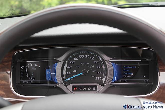 틸트/텔레스코픽 기능의 3스포크 스티어링 휠 디자인도 전혀 새롭게 바뀌었다. 아래쪽 스포크가 V자형으로 되어 있어 4스포크라고 볼 수도 있다. 알루미늄 트림 처리로 인해 훨씬 스포티한 분위기가 살아난다. 그 안으로 보이는 계기판도 완전히 달라졌다. 가운데 속도계를 큼지막하게 설계하고 좌우에는 디지털 스크린 방식의 디스플레이창이 설계되었다. 재규어가 XJ를 통해 처음 선 보였던 것으로 포드 산하에 있을 때 공동으로 개발했던 것으로 보인다. 스티어링 휠 스포크상의 리모콘 버튼으로 필요한 모든 정보를 확인할 수 있다.