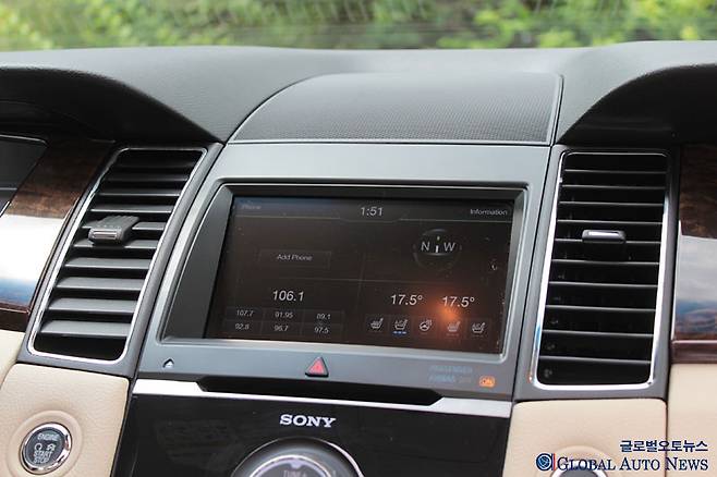 여전히 대시보드에서 세일즈 포인트는 포드 SYNC 시스템. 마이크로소프트와 공동 개발한 음성인식 커뮤니케이션 및 엔터테인먼트시스템이다. 운전 중 터치 스크린 방식의 사용에 부담을 느낀다면 음성 명령 기능으로 가능하다. 블루투스가 지원되는 핸드폰이 있으면 버튼 하나만으로 전화를 걸고 받을 수 있다. 차 안에서 SYNC로 걸었던 전화가 차 밖으로 나오면 자동으로 핸드폰으로 연결된다. 실렉터 레버 패널 주변에 세 개나 되는 컵 홀더가 미국차라는 것을 알려준다.
