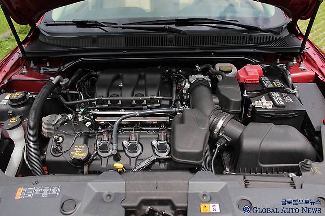 시승차에는 최고출력 292ps/6,500rpm, 최대토크 35.1kgm/4,000rpm을 발휘한다. 기존 모델은 267ps/6,250rpm, 34.4kgm/4,500rpm이었다. SHO는 370 마력/5,500rpm, 48.4kg.m/1,500-5,250rpm. 이 엔진은 TI-VCT(Twin Independent Variable Camshaft Timing)를 채용하고 있다. 파워 증강을 위해 밸브 오프닝 타임 정확히 제어하는 것으로 스로틀 응답성을 형상시키고 연료소모, 배기가스 저감효과를 추구하고 있다.