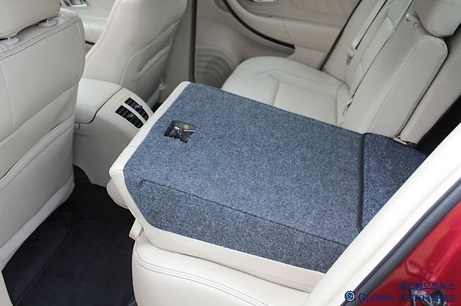 리어 시트는 40 : 60 분할 폴딩식. 가운데 컵 홀더가 있는 암 레스트가 설계되어 있다. 실내 공간은 평범한 수준. 크라이슬러 300C보다는 좁다. 머리 위에는 신장 170cm인 필자가 앉으면 주먹 하나 정도의 공간이 있다.