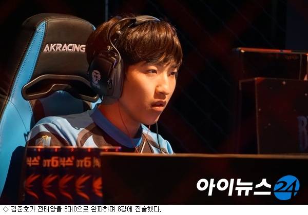[아이뉴스24 박준영기자] 프로토스의 강자 김준호가 강력한 우승 후보 전태양을 완파하며 8강에 진출했다.