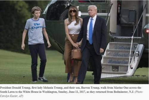 11일(이하 현지시간) 엄마 멜라니아와 함께 백악관에 입주한 배런은 전용헬기 '마린원'을 타고 사우스론(백악관 남쪽 뜰)에 내릴 때 '더 엑스퍼트(THE EXPERT)'라고 쓰인 하늘색 티셔츠를 입은 모습이 카메라 앵글에 포착됐다.