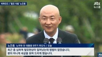 한편 노건호씨는 경남 김해 봉하마을에서 열린 노무현 전 대통령의 추도식에서 삭발한 채 등장해, 탈모로 인해 삭발하게 됐다고 밝혔다.